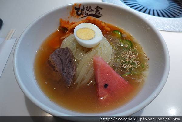 準備進去囉!裡面空間相當的大,我們被帶到2樓享用,除了冷麵,還有燒烤可以選擇哦!