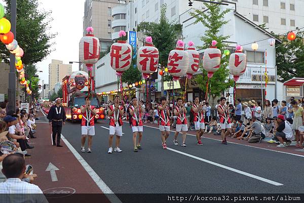 尾隨而來的就是拿著大燈籠上面寫著「山形花笠まつり」的壯丁們,這也意味著花笠祭正式開始囉!